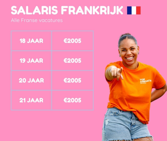 Bekijk de vacatures in Frankrijk 🚀*Bovenstaande bedragen zijn per maand en een indicatie op basis van een 35 uur durende werkweek vanaf 1 juli 2025. Het gaat hier om een bruto all-in salaris inclusief vakantiegeld. Je krijgt een reiskostenvergoeding van maximaal €100 voor de heenweg en nog eens maximaal €100 voor de terugweg bij het afronden van je werkperiode.